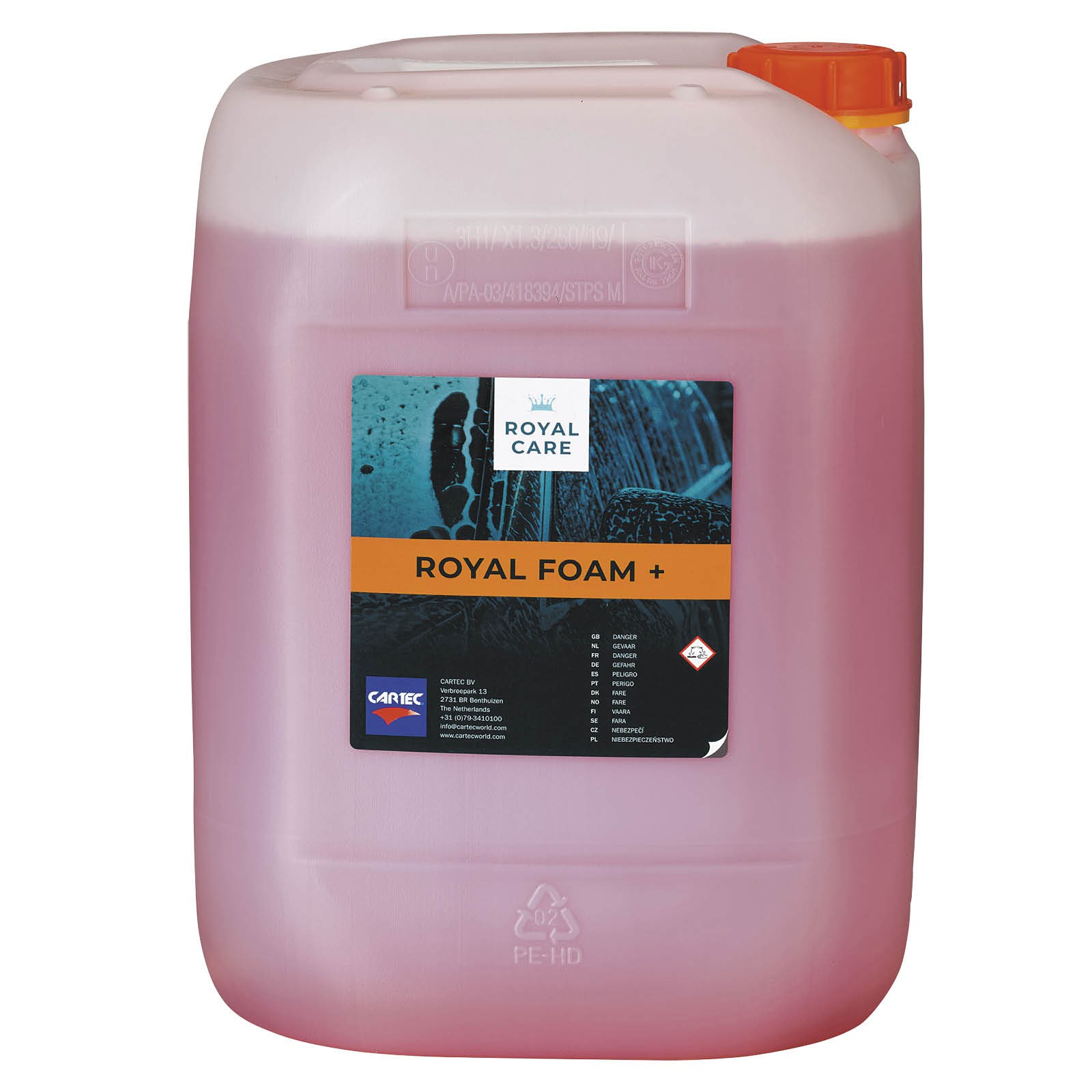 Royal Foam + is een hoog geconcentreerde schuimshampoo en voor gebruik in de wasstraat. Door het stabiele schuim gecombineerd met een frisse geur wordt het wassen van de auto’s een beleving. Royal Foam + is PH Neutraal en biologisch afbreekbaar. Het product werkt zeer effectief in wasboxen / DIY installaties en is mede in te zetten in een lavaboog. Royal Foam + is NTA-vrij.