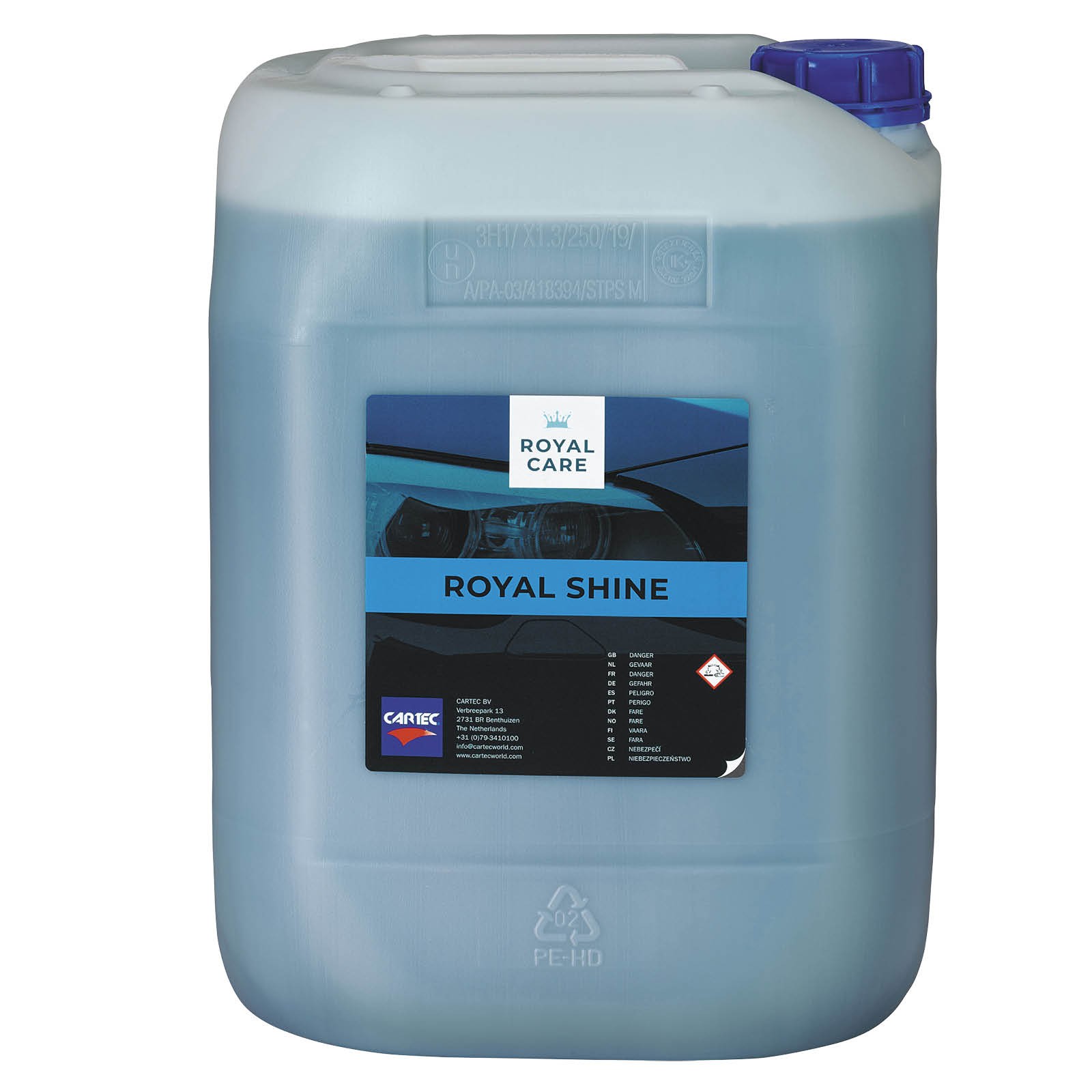 Royal Shine is een hoogglanzende drooghulp welke de waterfilm snel breekt en een uitstekend droog resultaat geeft. Het product is inzetbaar bij hard, zacht en osmose water. Royal Shine is ook uitstekend te gebruiken in wasboxen.