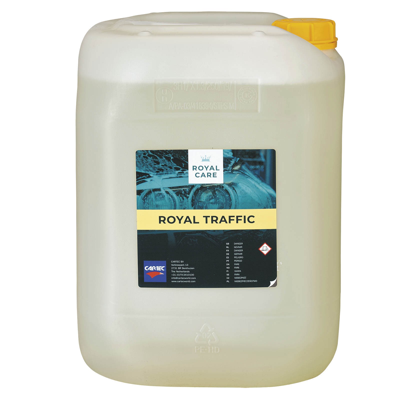 Royal Traffic Omschrijving Royal Traffic is een krachtige voorreiniger voor gebruik in de wasstraat en uitstekend geschikt voor het verwijderen van straatvuil. Royal Traffic creëert een aangename geur bij gebruik. Het product is hoog schuimend en NTA-vrij. Code RC03 Login om direct te bestellen